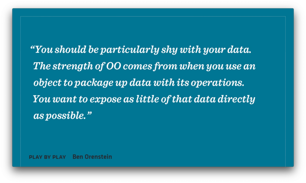Along the way, we bump into a ton of juicy topics (Geoffrey asks great questions. We cover my refactoring philosophies, favorite techniques, TDD style, terse shell aliases, and hard-earned OO wisdom.